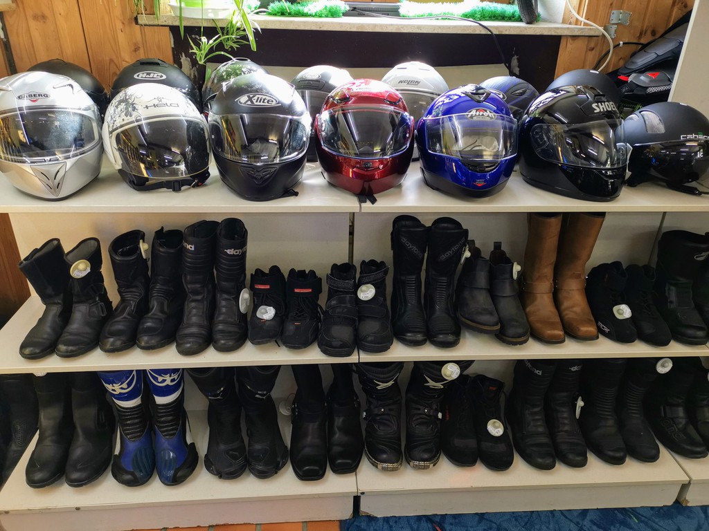 Helme, Stiefel, Protectoren u. Zubehör