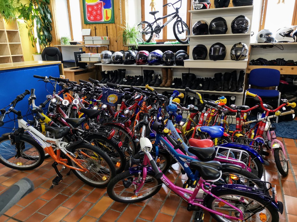 Fahrräder aller Art (komplett funktionsfähig!), Kinder-Fahrradsitze, Helme, Bekleidung und Schuhe